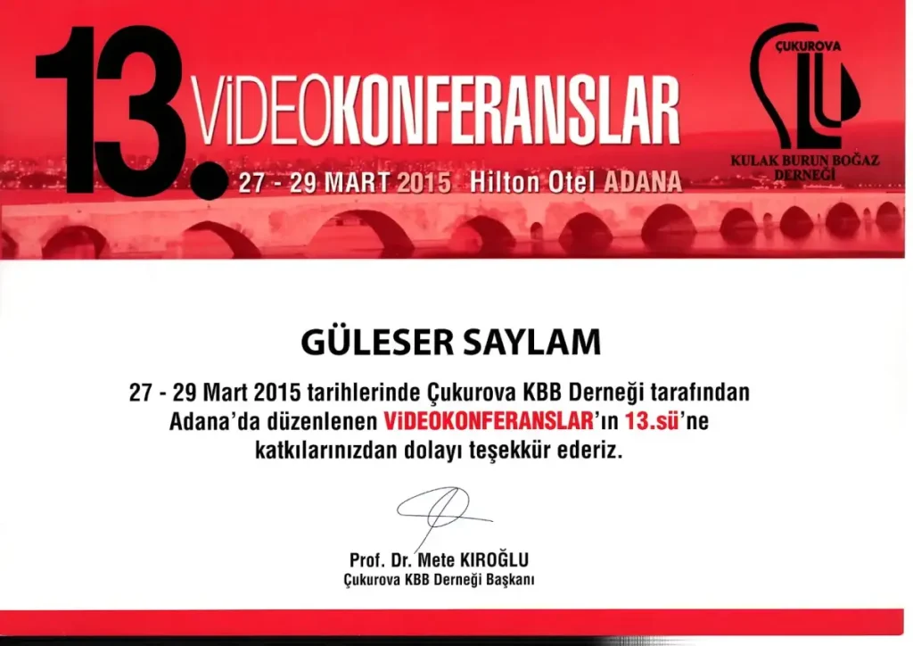 Ankara Foniyatri Günleri, Ustalarla BuluşmaFoniyatri Günleri toplantısı 14-15 Aralık 2023 tarihlerinde Ankara’da Devlet Su İşleri Genel Müdürlüğü Konferans Salonunda gerçekleştirildi.İNCELEEtkinlikler12. Türk Rinoloji Kongresi21 Nisan 201612. Uluslararası Kulak Burun Boğaz ve Baş Boyun Cerrahisi Kongresi7 Nisan 201637. Türk Ulusal Kulak Burun Boğaz ve Baş Boyun Cerrahisi Kongresi28 Ekim 2015Baş-Boyun ve Tiroid Cerrahisi Okulu Eğitim Programı1 Ekim 20158. Ulusal Larengoloji Kongresi8 Mayıs 201511. Türk Rinoloji Kongresi16 Nisan 2015Video Konferanslar-1327 Mart 2015Taze Donmuş Kadavra Diseksiyon Kursu7 Mart 201536. Türk Ulusal Kulak Burun Boğaz ve Baş Boyun Cerrahisi Kongresi5 Kasım 2014Yazı sayfalandırmasıPrevious Page 1 2 3 4 5 … 7 Next Page